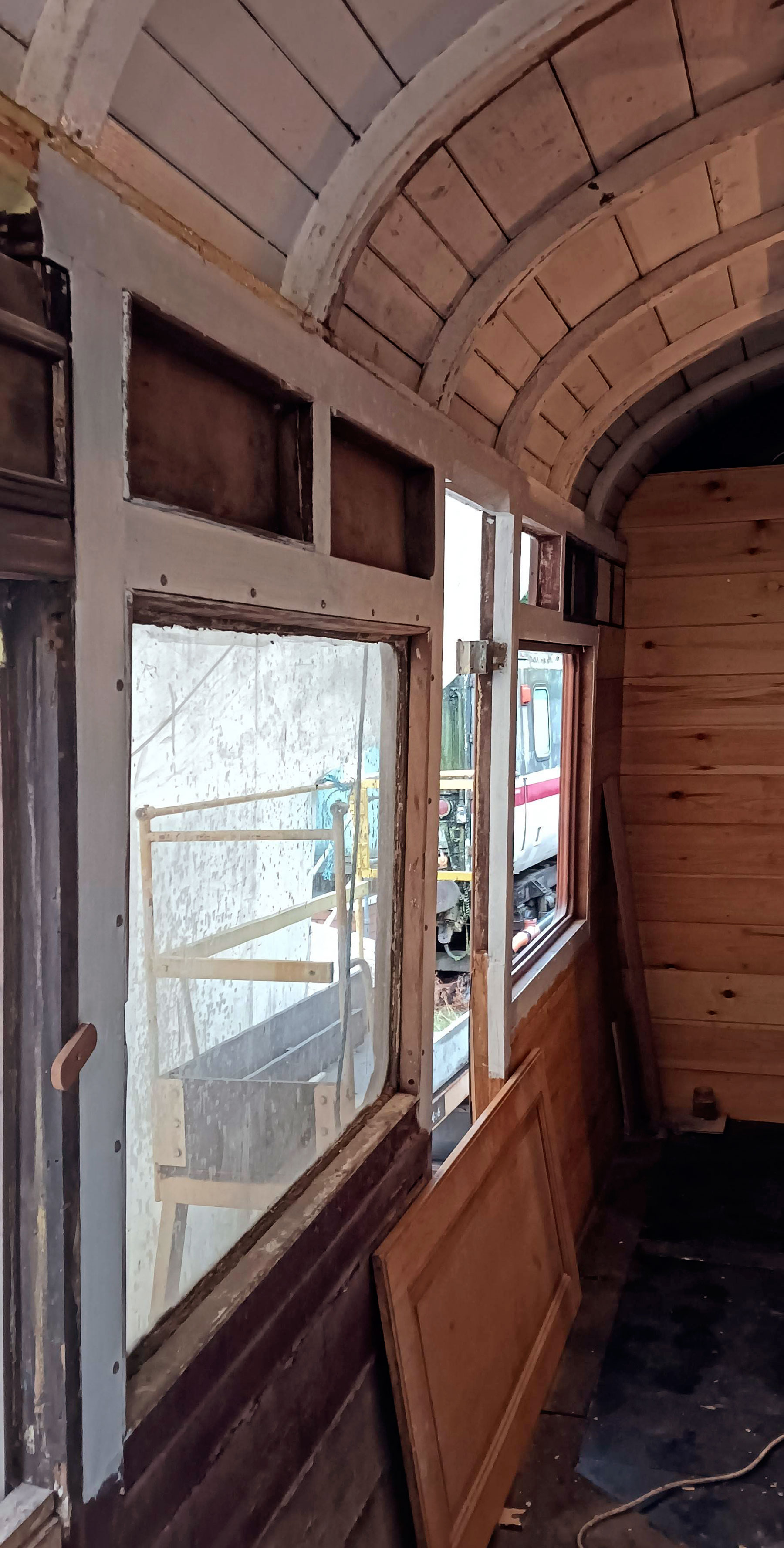 Looking north along the reinstated corridor, the compartment wall between compartments 3 and 4 has been completed and the corridor partition installed. Photo: Dave Smith.