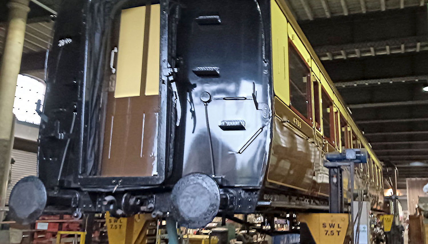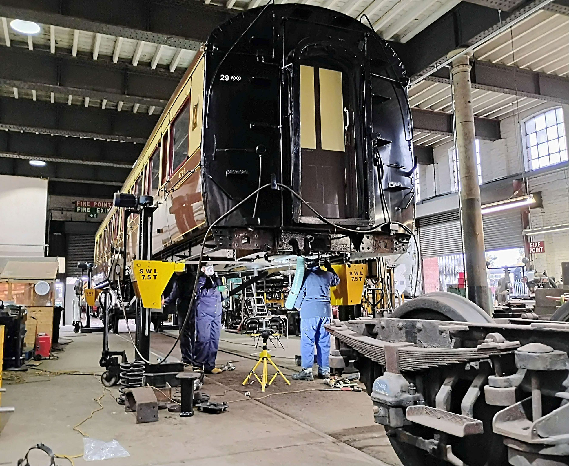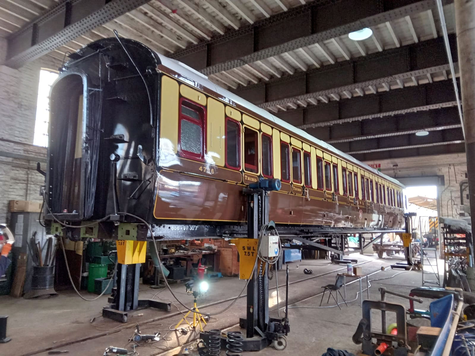4786 on the lifting jacks in Kidderminster workshop. Photo: Mick Haynes.