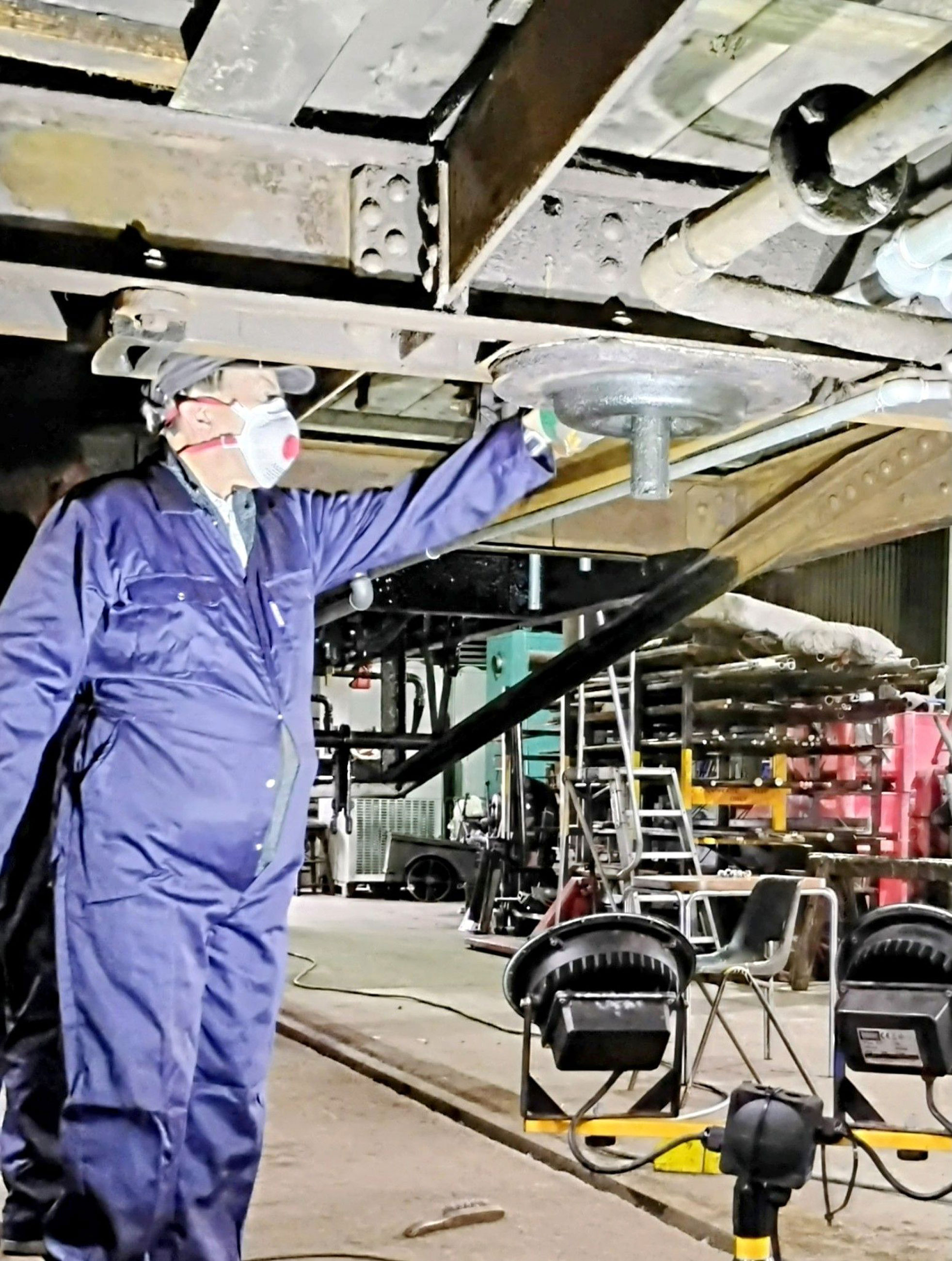 Siphon G 1257 is also in the yard for repair work. Here Chris Amies is progressing the frame repairs beginning with repairing the standing posts. Photo: Mick Haynes. |