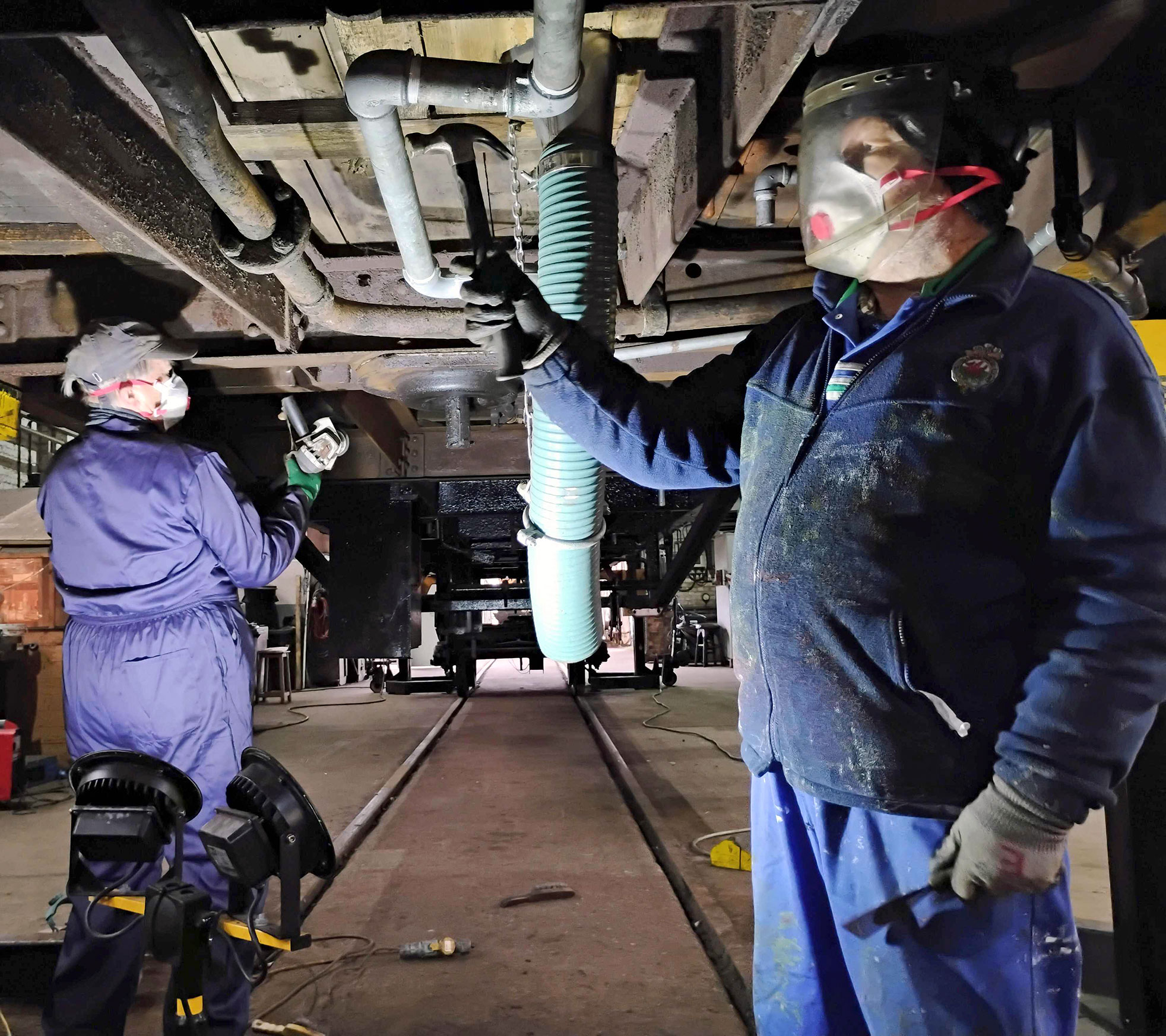 The brake block backs and hangers are now finished. The second bogie is progressing well with work at Kidderminster concentrating on the bow girders and volute springs. Photo: Mick Haynes.