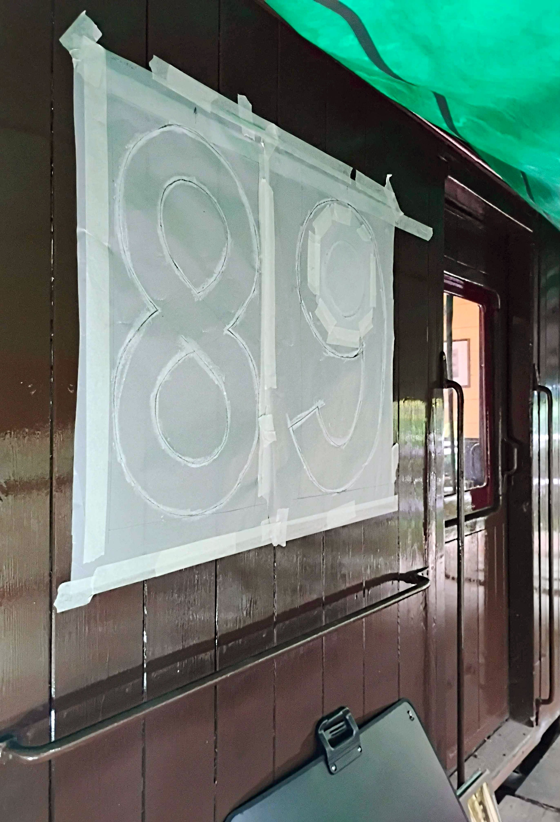 Signwriting preparation for the large van numbers. Photo: Dave Smith. |