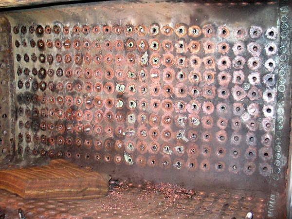 View of the firebox crown. The tap can just be seen coming through - 3rd row up, halfway along.