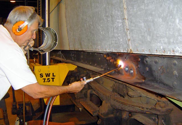We have finished riveting the solebars and have now cut out the defective longitudinals.