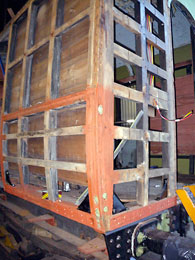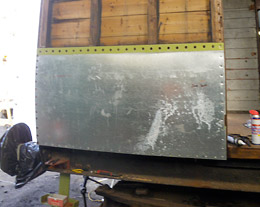 Work on the east side repairs are progressing well. Main stringer and cantrail repairs are underway around the both sides of the Guard's compartment. |