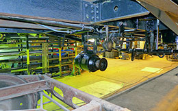 650 is now in Kidderminster carriage works and has had its steam heat tests completed. Work is now concentrating on the vacuum system making the brake beams work freely before mounting the overhauled vacuum cylinders. Then the dynamo and pull rods will be fitted before testing the vacuum and electrics. |