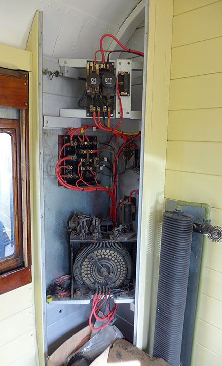The new electrical cupboard in the Guard's Van with framework and the shelves in place.