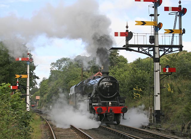 45110 leaves light engine for Kidderminster following a thorough clean from the Bewdley MPD cleaners. 29th July 2007.