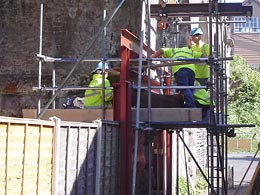 With GNR 2701 at Kidderminster works for the final touches to be applied, the LNER Coach Fund are working on GWR full brake 1145 to take over the roll as station shop. Staging has been erected around the coach to help gain access to gutters and upper panels. |