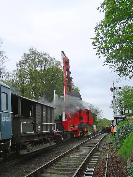 This sequence of pictures shows Bewdley south signal being moved from the cattle dock and re-erected with the help of the 30 ton steam crane. Photographed 3rd May 2006. There's still much fitting work to do before it can be fully recommissioned.