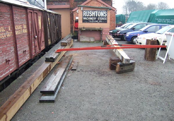 The two, original, short dolls under the goods shed canopy for repainting.